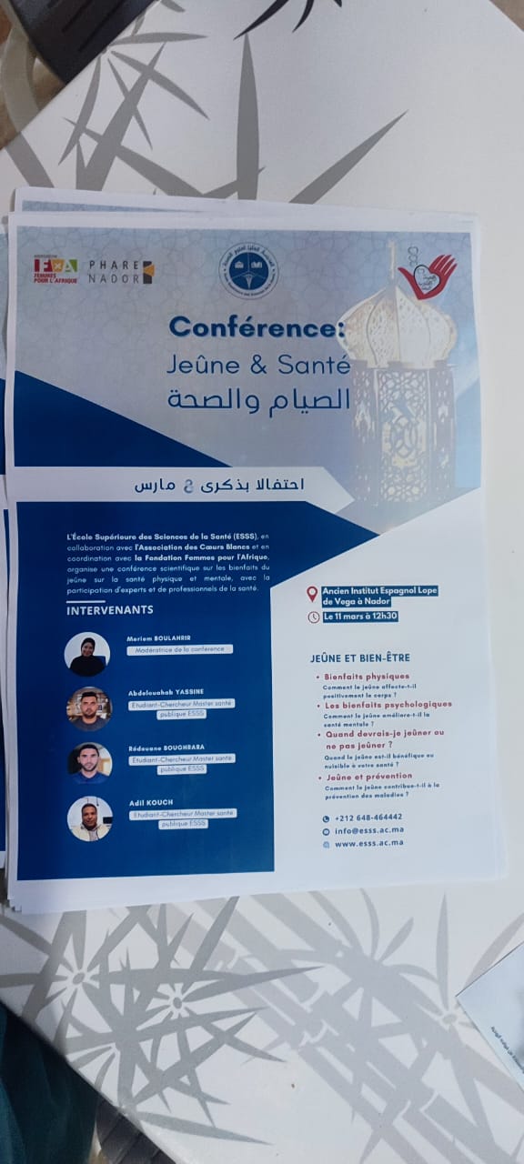 نظمت المائدة المستديرة بتنسيق بين المدرسة العليا لعلوم الصحة وجمعية القلوب البيضاء و جمعية نساء من اجل افريقيا ،وخصصت لمناقشة تأثير الصيام على الجسم، فوائده الصحية، وكيفية الصيام بطريقة سليمة خاصةً للأشخاص الذين يعانون من أمراض مزمنة.