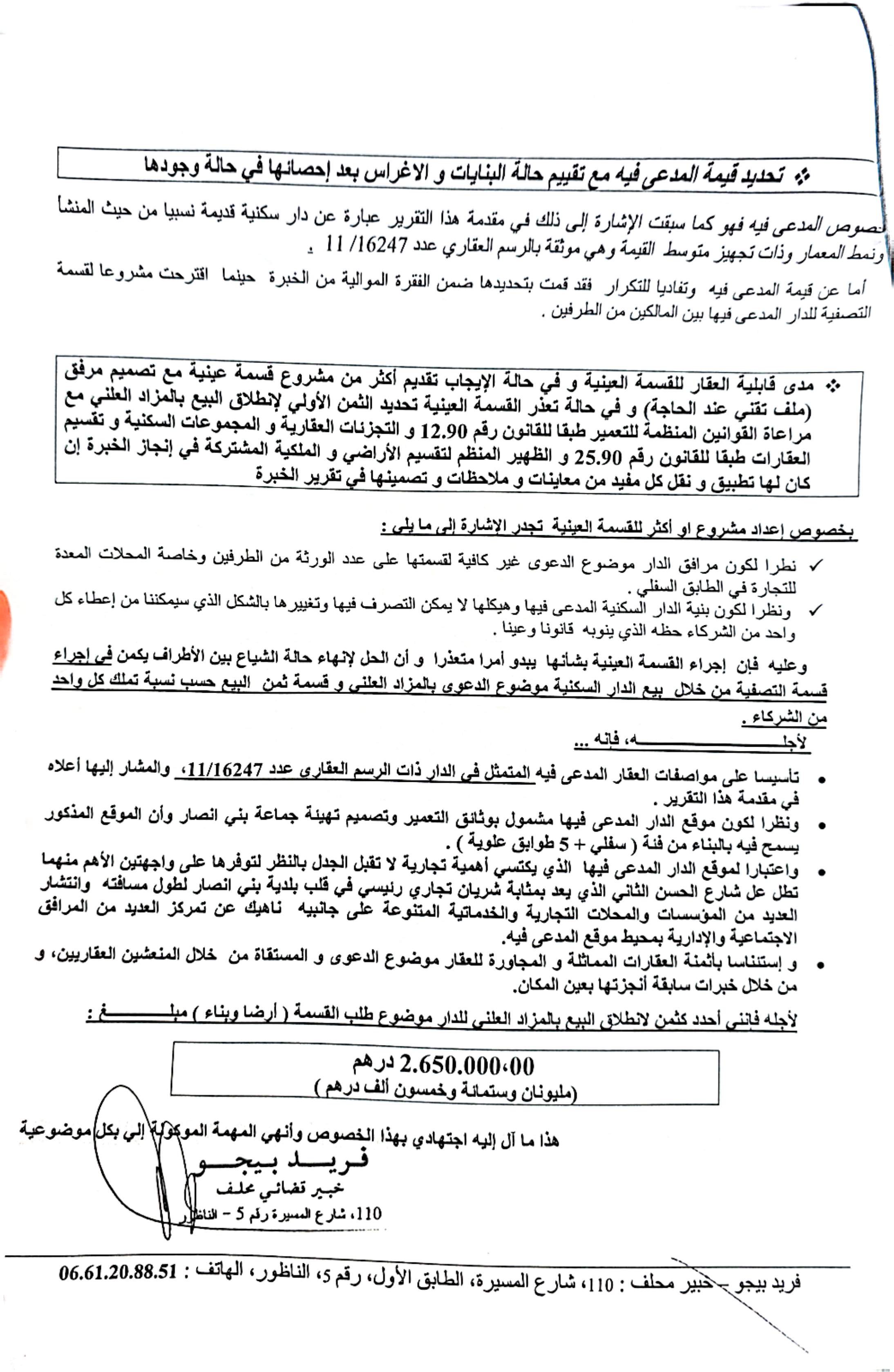 العقار المعروض للبيع لا يقتصر على وضعيته الحالية كدار سكنية قديمة، بل يكتسي أهمية أكبر من زاوية التعمير، حيث أشار تقرير الخبرة إلى أن موقعه مشمول بوثائق التهيئة الحضرية التي تسمح ببناء يصل إلى R+5 (طابق أرضي زائد خمسة طوابق).